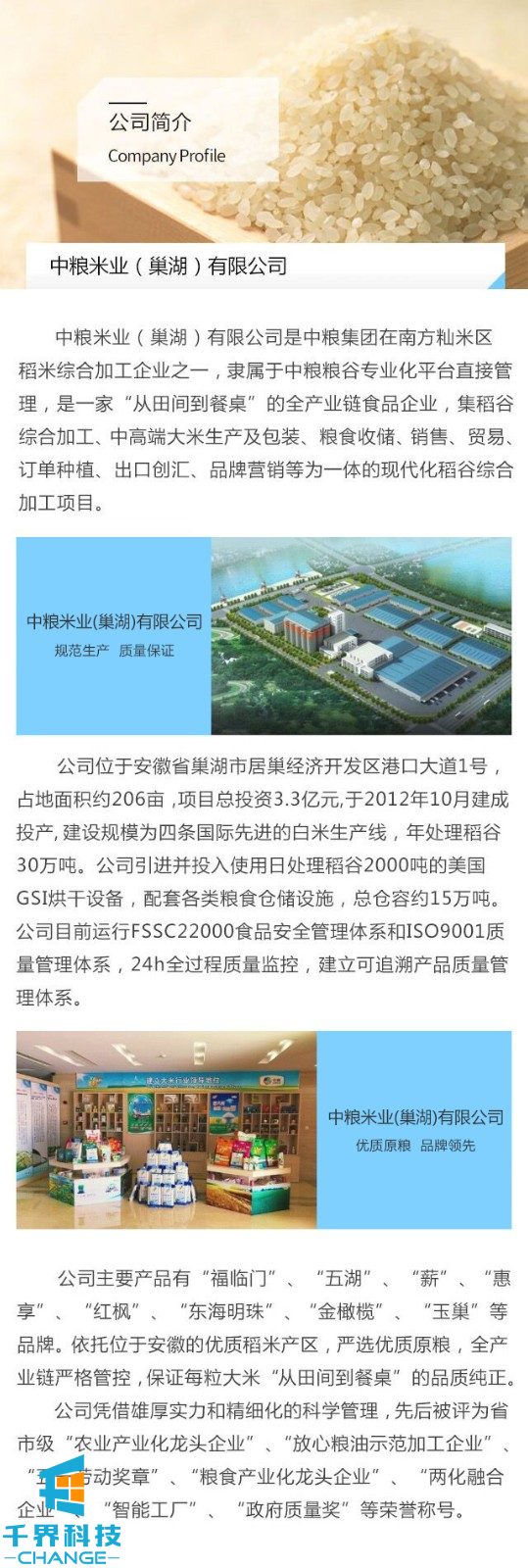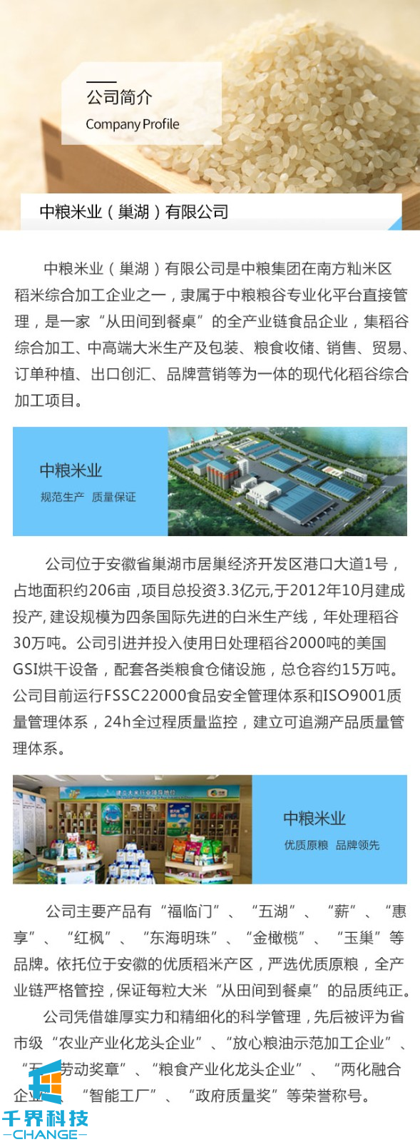該項目是中糧集團巢湖米業(yè)定制的一個(gè)微官網(wǎng)。