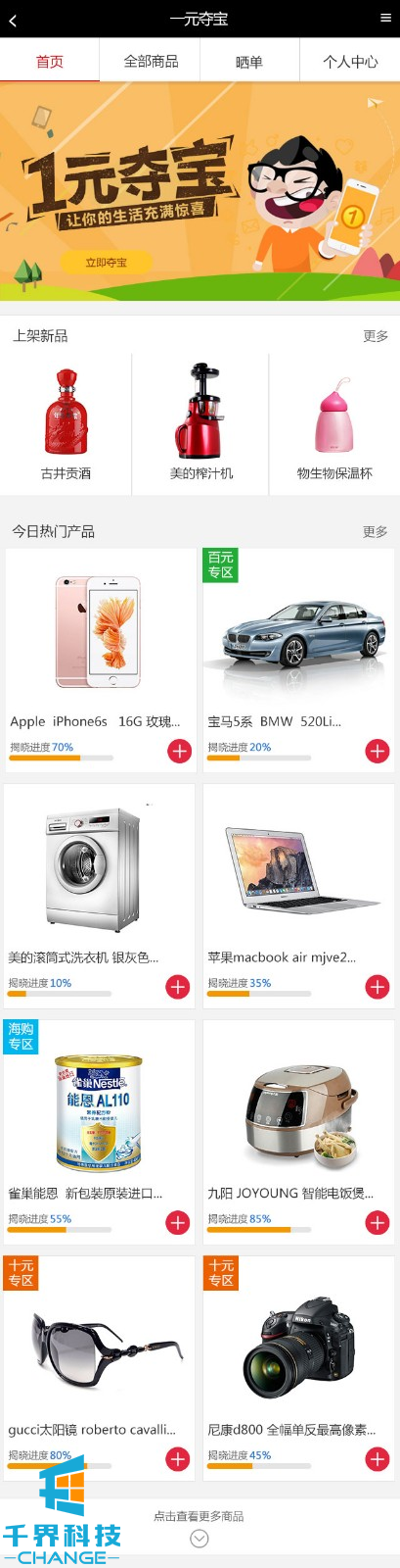 一元奪寶是增粉一大利器,用戶(hù)只需投入一元錢(qián)即可跟眾多用戶(hù)一起參與大獎的奪寶行動(dòng)。有一元區,十元區,百元區,千元區等