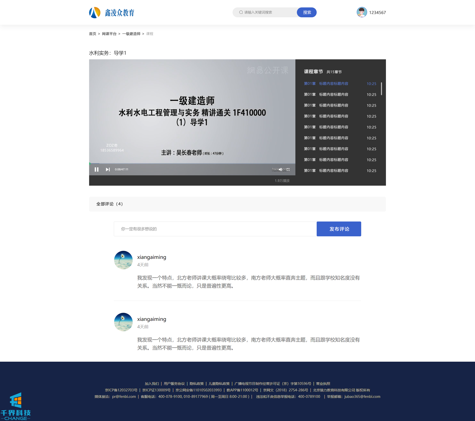 項目名稱(chēng):鑫凌眾pc網(wǎng)課學(xué)習平臺 項目類(lèi)型:網(wǎng)站建設